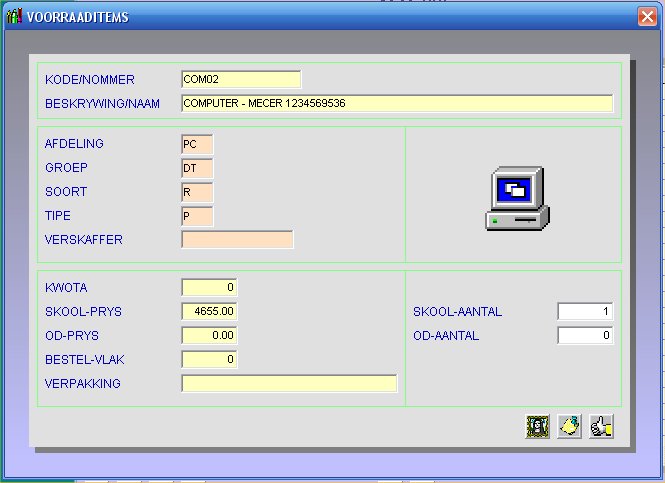 Stock control , assets register